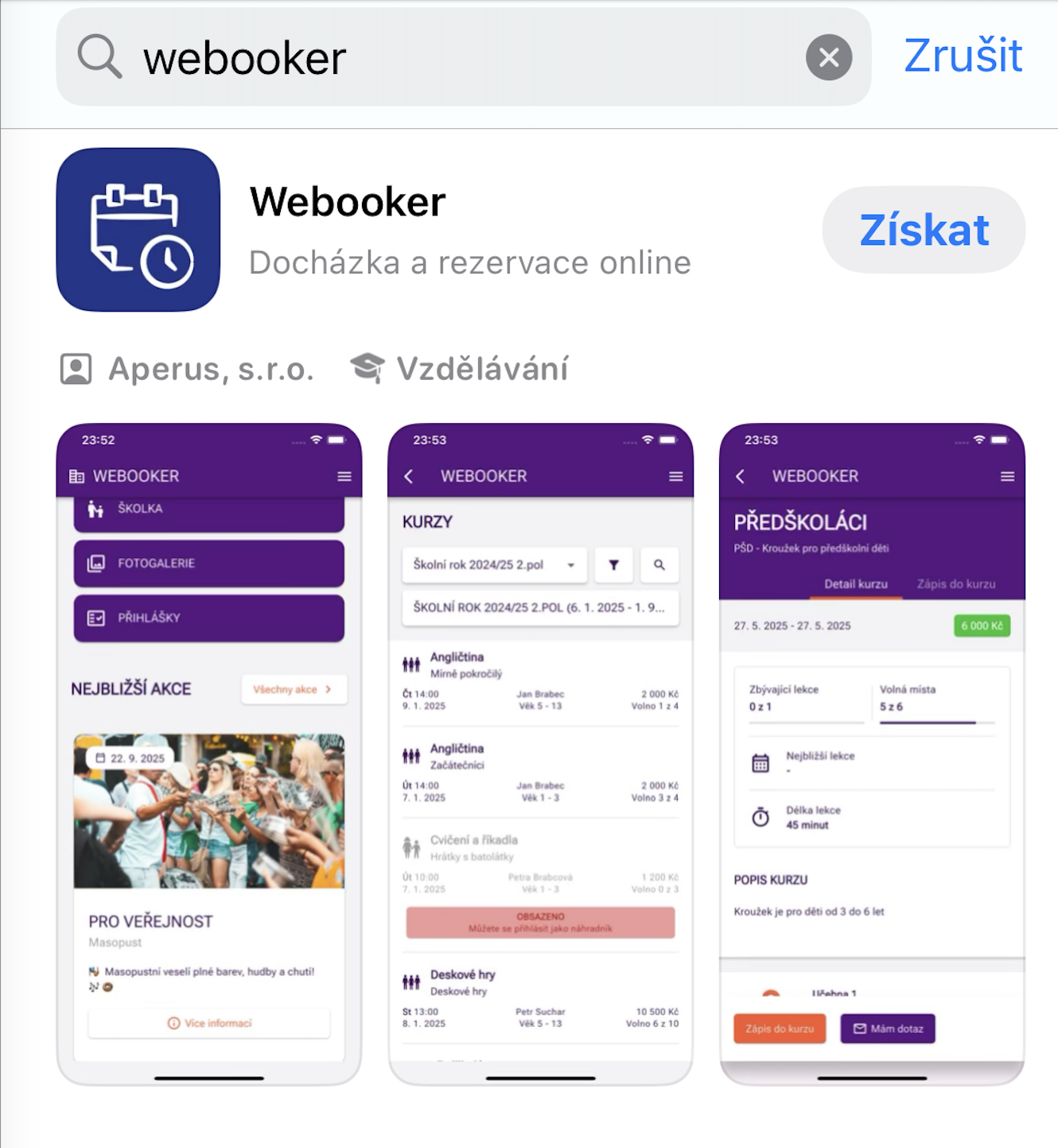 Online rezervační systém Webooker pro dětské skupiny s mobilní aplikací